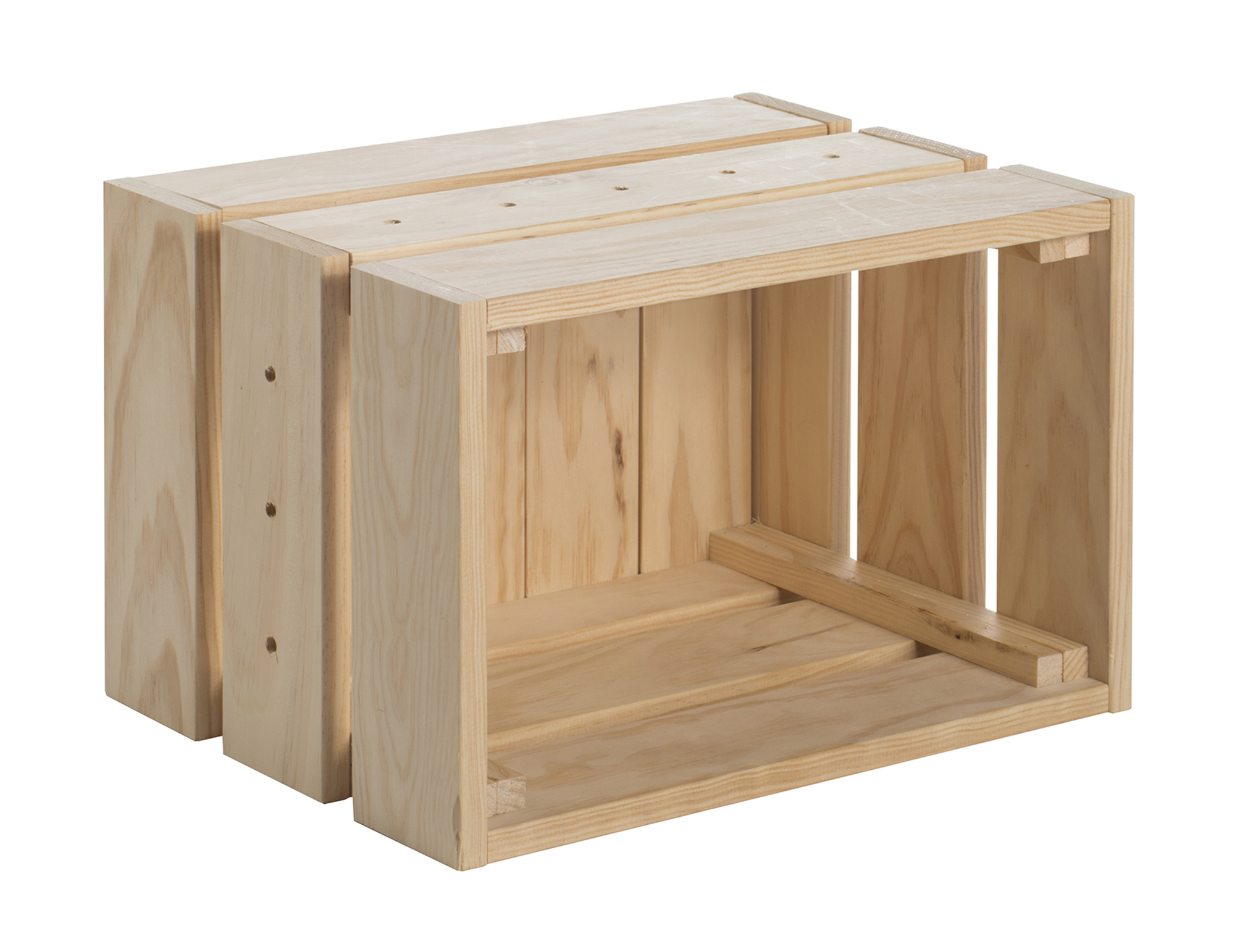 Su sistema de encaje es fácil y sencillo. Y se puede convertir en lo que tú quieras; con unas ruedas puede ser un revistero. O hazte con varias del mismo o distintos tamaños, combínalas y crea una mesa de centro para un salón, una estantería, un expositor para una tienda, un mueble para almacenar juguetes y libros en una habitación infantil o guardar la vajilla en una cocina. ¡Atrévete a pintarlas!